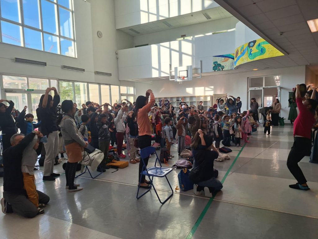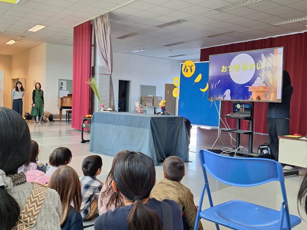 先生方による「どうしてお月見をするのかな?」を鑑賞しました。国によって月の模様が違って見えること、お月見をする理由など、子供たちは興味深そうに聞いていました。